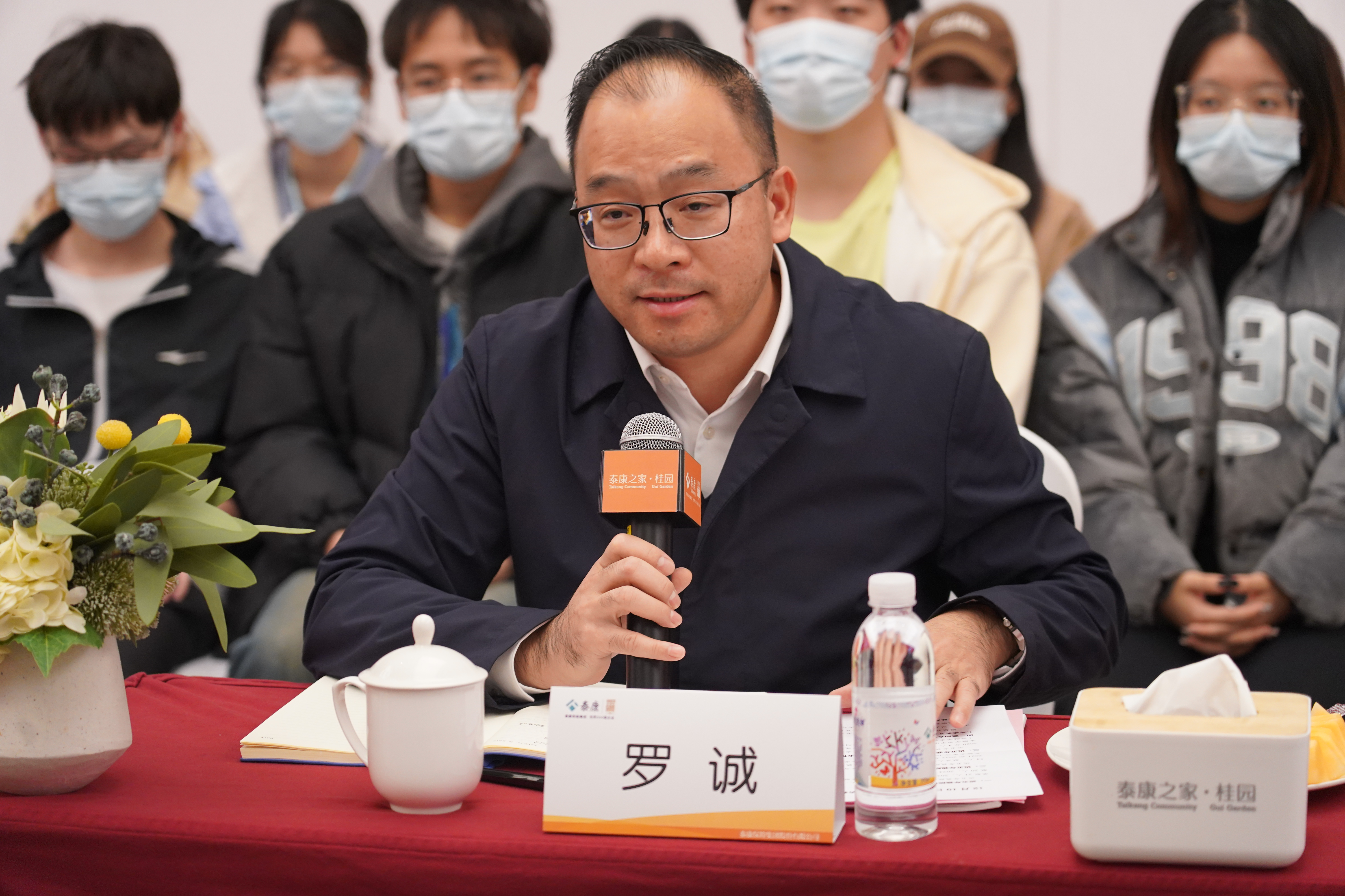 参观结束后,公司师生与泰康人寿广西分公司党委书记、总经理吴建华及相关部门负责人进行座谈交流。会上,罗诚详细介绍了公司办学发展、团队建设、人才培养、员工实习就业等情况,希望以此次交流为契机,建立良好的合作模式,为毕业生开拓更多的就业机会。吴建华介绍了泰康人寿深耕银发产业,致力“医养康宁”,履行社会责任,为应对长寿时代挑战提供企业解决方案的情况,并表示愿意与公司建立长期稳定的合作关系,为毕业生提供更多的实习和就业机会。双方围绕精专化人才培养、科研及培训合作、老员工职业规划、党建联学共建等进行了深入交流。