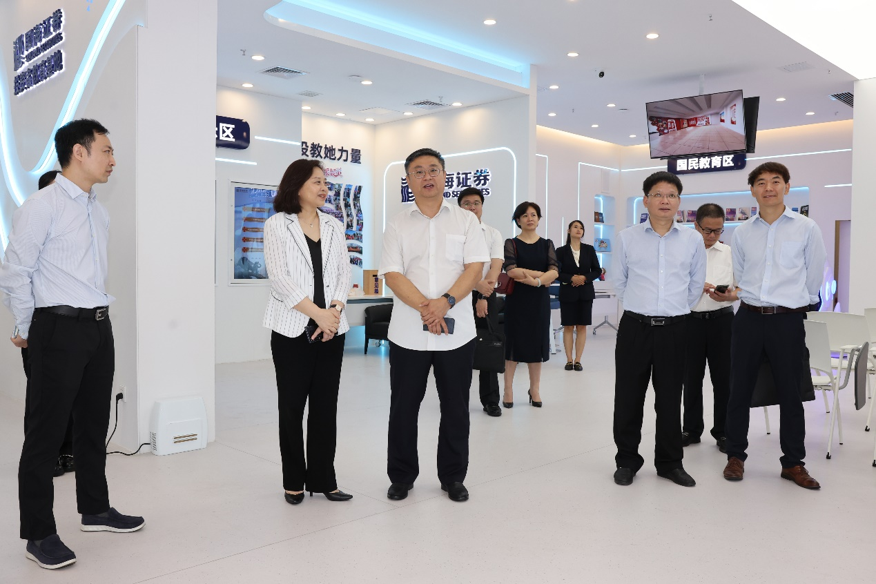 国海证券股份有限公司党委书记、董事长何春梅携高管人员对田副董事长一行的到来表示热烈欢迎,陪同参观了公司数字大厅和国海证券全国投资者教育基地。