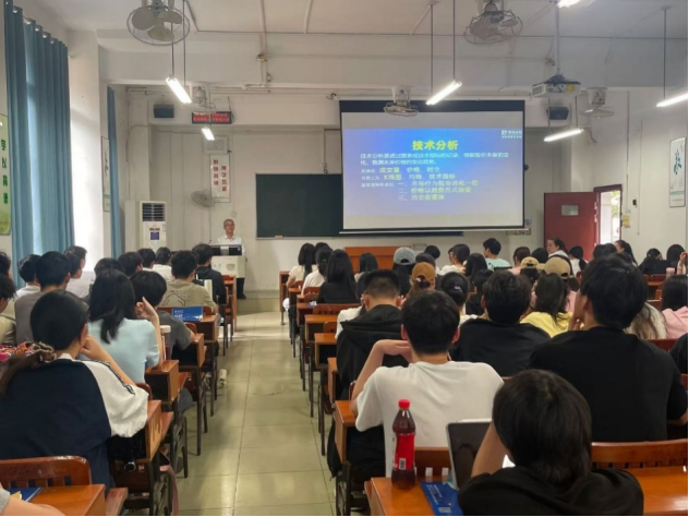 2025年4月18日,公司金融系特别邀请国海证券梧州大学路营业部总经理陆明走进金融学专业本科生《证券投资学》课堂,开展《“未来投资家”金融研学之旅》专题讲座。活动由金融系主任谢军主持,2022级金融学专业及2022级金融经济创培班金融学方向的一百余名员工参加讲座。