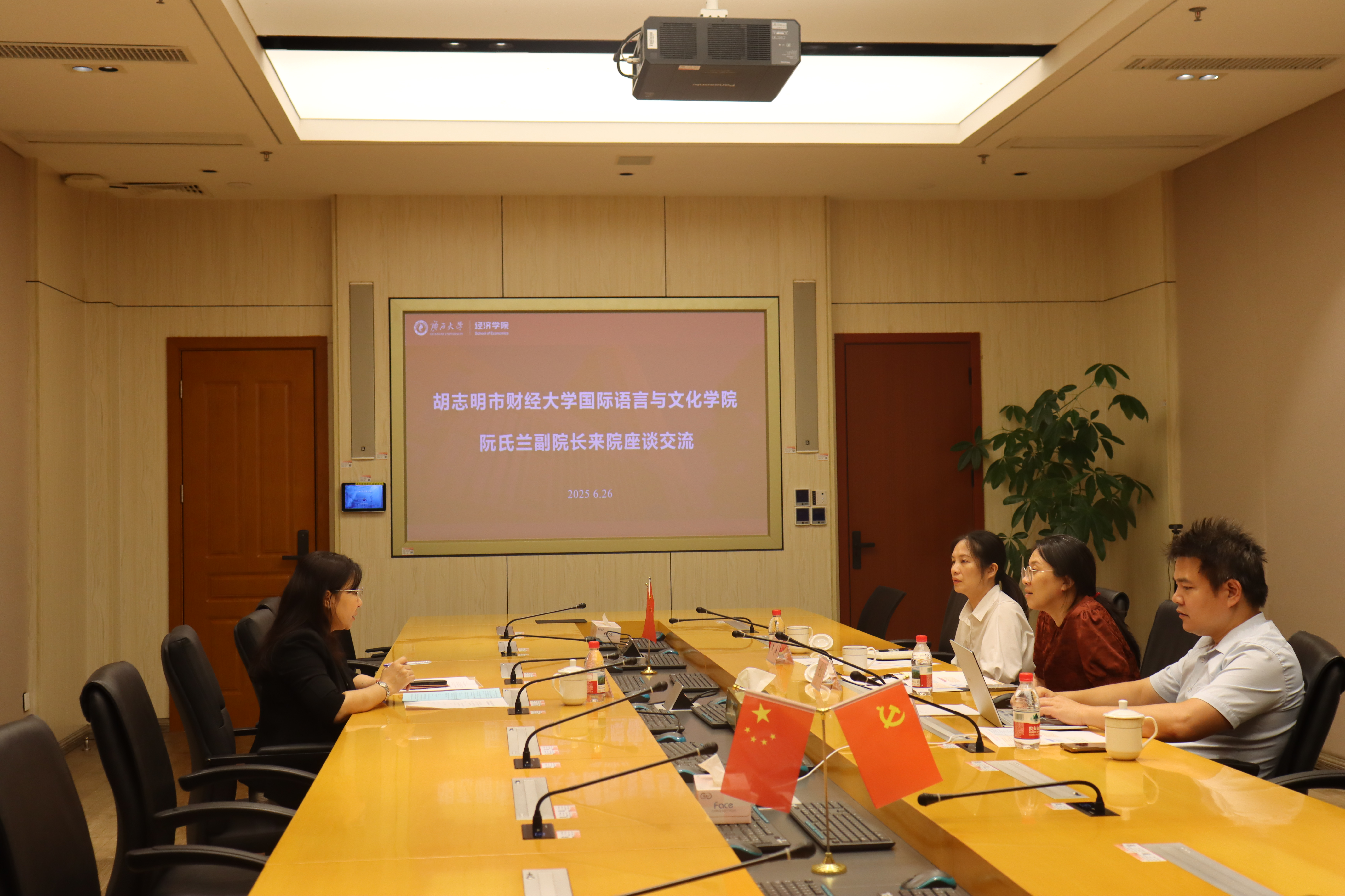 6月26日,越南胡志明市财经大学阮氏兰副经理到访公司。双方就深化教育合作、促进学术交流等议题展开座谈交流。公司副经理公正主持座谈,中国—东盟研究院越南研究所负责人谢德富,院研究生教学办公室负责人黄芸参与座谈。