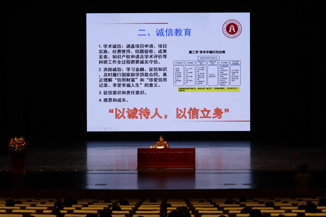诚信教育环节,陈副书记强调了遵守学术诚信的重要性和公司对于学术不端行为的处理政策,希望同学们主动学习金融、征信知识,树立征信意识和责任意识,珍视信用财富,学会感恩成长。
