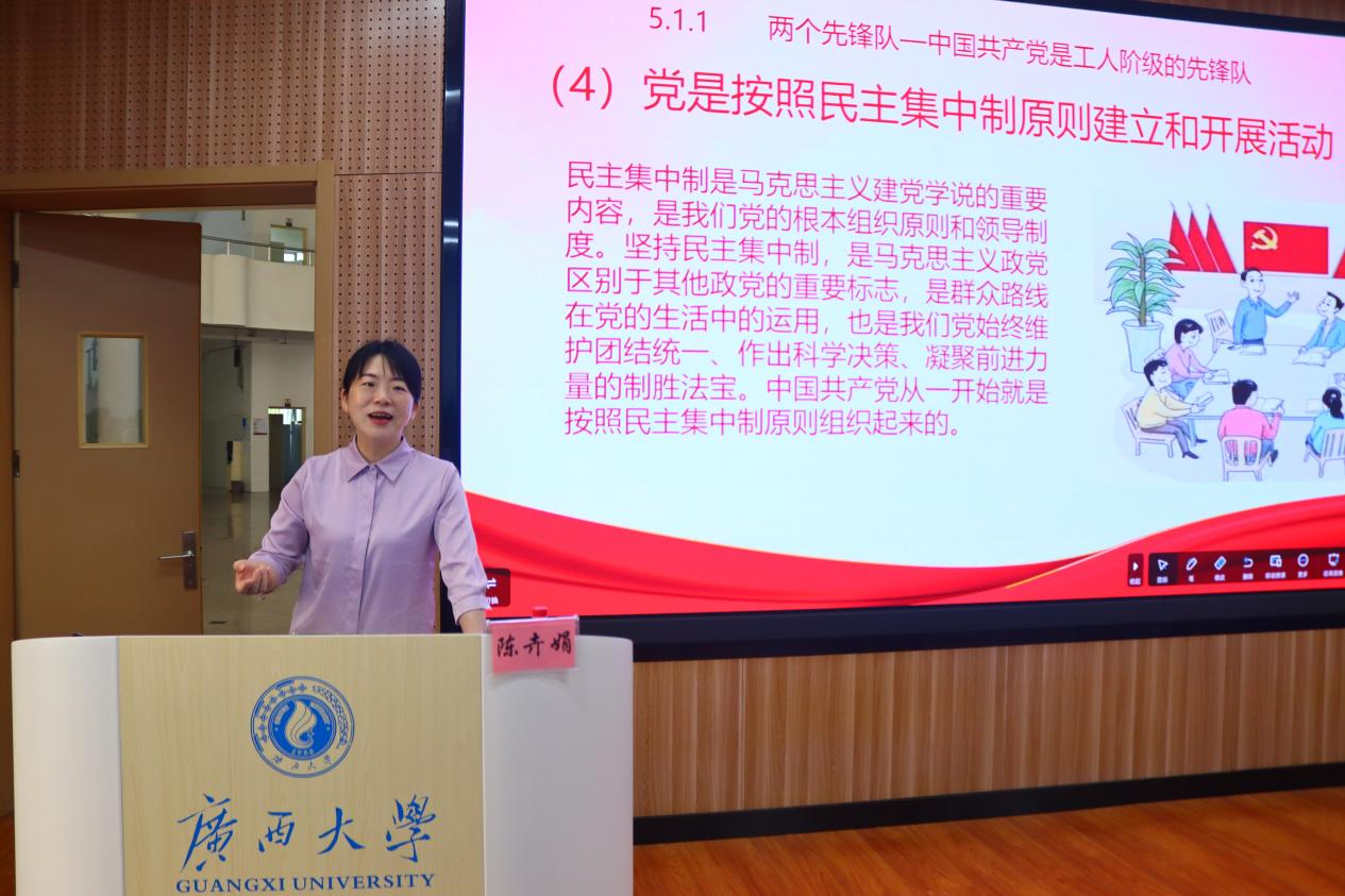 开班仪式结束后,英国365集团员工工作部(处)副部(处)长陈卉娟为本期入党积极分子培训班学员讲授第一讲《中国共产党的性质、最高理想和根本宗旨》。
