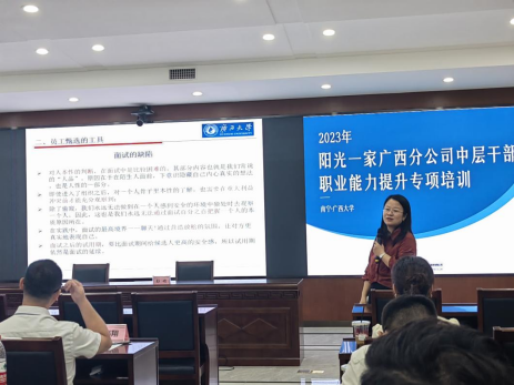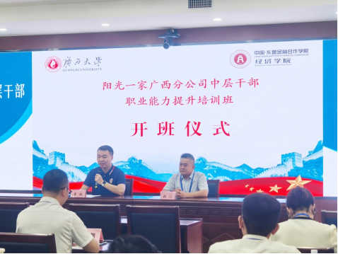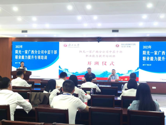 11月2-3日,公司承接的阳光一家广西分公司中层职业能力提升专题培训班正式开班。公司经理助理覃诚博士、阳光一家家庭综合保险销售服务有限公司广西分公司总经理张喆,出席开班仪式并分别致辞。共30名学员参加本次培训。