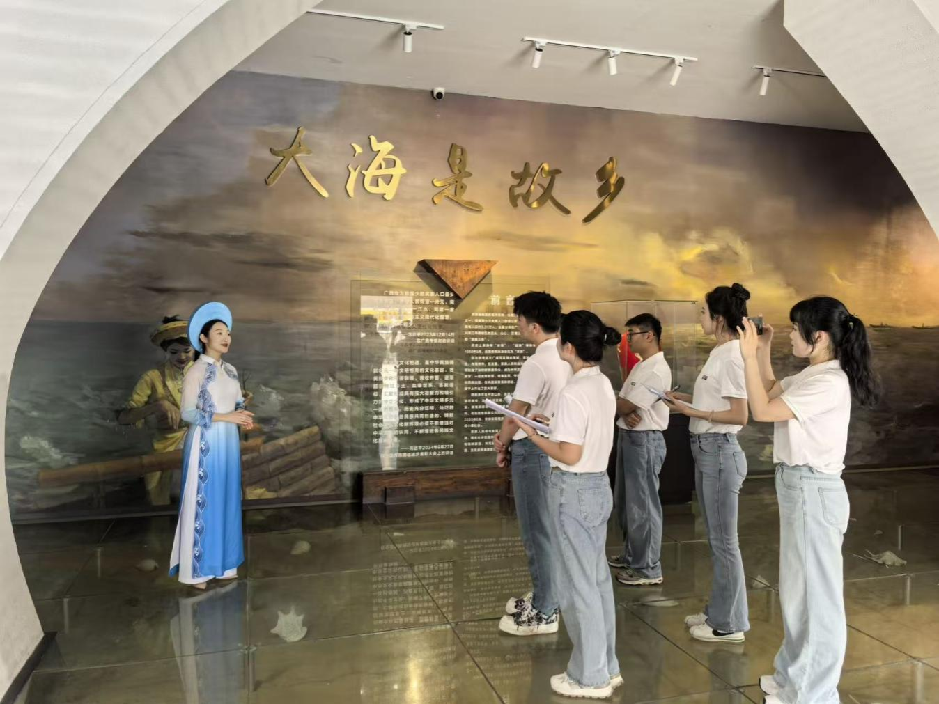 全国青联委员阮媛媛为实践团讲解展馆内容
