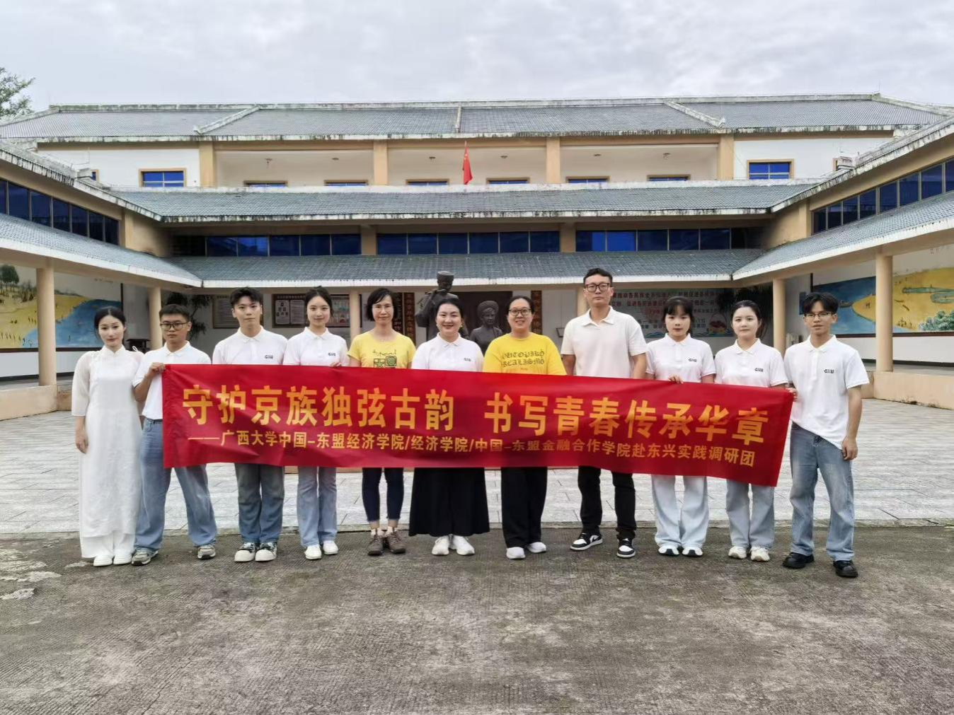 实践团在东兴京族生态博物馆前合影