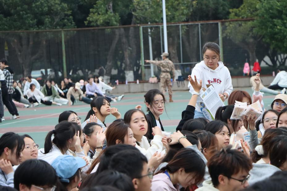 慰问现场,陈卉娟副书记代表公司对军训教官和指导员们的辛勤付出表示衷心感谢,向认真训练的2023级同学们致以亲切关怀与问候,对大家不怕苦累、积极投入的良好面貌给予了高度肯定。她向参训员工提出三句期望:一是好好训练,通过军训在遵规守纪、规律作息、整洁内务、强健体魄、团队精神等方面都有所收获;二是训出作风、训出精神、训出成绩,在26日的军训汇演中展现经院学子朝气蓬勃、昂扬向上的英姿和风采;三是锤炼品格,把在军训中学习磨练的优良品质应用到今后的学习生活中,不断提升自我。陈副书记还提醒同学们近期会有大降温,大家要注意防寒保暖,如遇身体不适一定及时报告教官和老师。