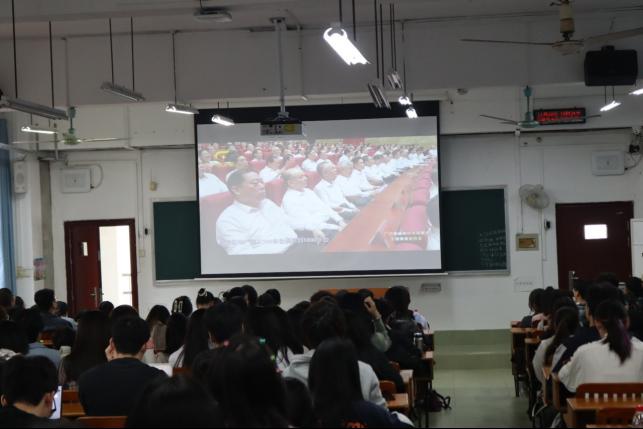 师生党员观看广西勤廉榜样先进事迹主题情景报告会实况录像