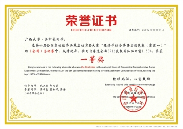 历时近四个月的赛程,让同学们受益匪浅。莫如凤同学感悟道:“从盛夏到金秋,从小白到国一,是成长是收获是突破。从5月13日第一次接触该项比赛,经历了多次积分赛和练习赛,友谊赛,4个月的努力终于在今天画上句号。4个月里,在实验部分经历了数次的训练,每次训练结束的复盘,一次次分析和总结,熟练度也随之提高,再到后来摸索不同的思路去试验。在报告部分,小组分工合作,在老师的指导下不断修改优化。最终的成绩于我而言只是一份肯定,真正的收获还是比赛的过程与经历。从比赛当中的收获是多方面的:宏观经济和微观经济还有博弈论的学习和运用,报告的撰写,虚仿实验的策略等,以及所积累的经验都有助于今后的学习和比赛。最后,非常感谢两位老师和学长学姐的指导,感谢其他成员的合作。慢慢回顾了四个月的努力感觉熬过的夜都值得!认真走过的每一步都算数!”