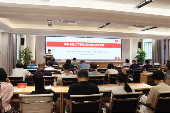 为进一步加强师德师风建设,引导教师涵养优良师德师风,营造风清气正的育人环境,7月14日上午,/中国-英国365集团在101教室开展师德师风专题教育,公司党员领导干部、全体教职工参加学习。
