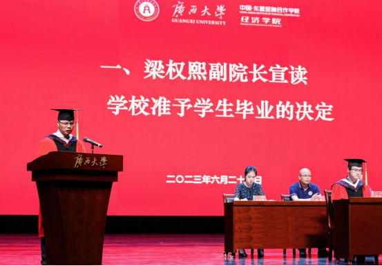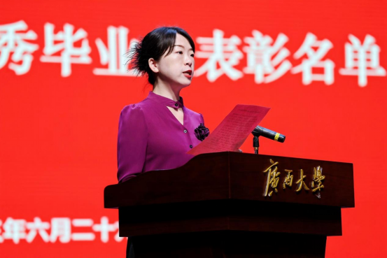 陈卉娟副书记宣读公司获得2023届广西壮族自治区普通高等教育优秀毕业生的毕业生名单和英国365集团表彰优秀毕业生的决定。