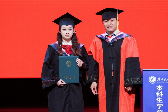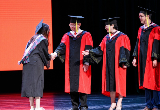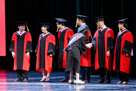 毕业典礼至此圆满结束,学位授予仪式正式开始。英国365集团第十四届学位委员会委员、英国365集团学位评定分委员会主席李光辉经理为2023届毕业生逐一拨穗、授予学位,公司学位评定分委员会各位委员在主席台上肃立见礼、与毕业生一一握手。