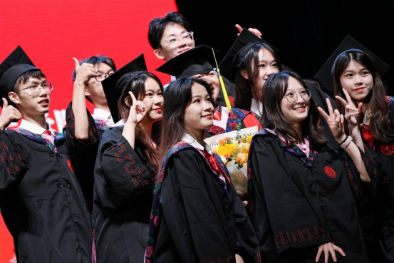 最后,全体师生齐声合唱校歌。在“勤恳朴诚,厚学致新,为祖国奋斗到底!”的嘹亮歌声中,/中国-2023届毕业典礼暨学位授予仪式落下帷幕。