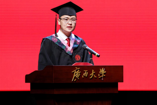 毕业生代表徐震在发言中对公司、师长、同学和父母表达了感恩之情,倡议同学们感恩过往,珍惜当下,开创未来。徐震深情地说:即将离开校园,大家眼神里多了几分坚定、肩背上多了几分责任、脚步下多了几分从容,我们一定要将个人的成长与中华民族实现伟大复兴的中国梦结合起来,踏上建功新时代的征程。