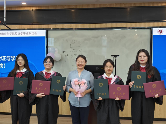 6月28日下午,经济系本科毕业生欢送会在商管院509A教室举行,梁权熙副经理在经济系欢送会上致辞,他向毕业生提出了殷切的期望,勉励同学们厚植家国情怀,坚持学习进步,用积极的心态破除万难,通过不懈奋斗实现理想。参加欢送会的全体老师祝愿毕业生们在未来岁月里做好自己人生航船的船长,坚守正道、把定航向,劈波斩浪、一往无前。