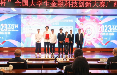 前期,经过中国工商银行广西分行相关专业条线充分论证评审等环节,最终筛选出前50强作品获得优秀奖,前10项优秀作品进行现场路演。其中,公司共有9支队伍进入广西赛区50强,1支队伍进入决赛现场路演环节。经过激烈的现场比拼,广西赛区共评出一等奖2组,二等奖3组,三等奖5组。公司由何康、常雅丽老师指导,韦颖珊、袁滢、徐友统三位同学组成的“E起宠你”团队在广西赛区决赛中荣获一等奖!