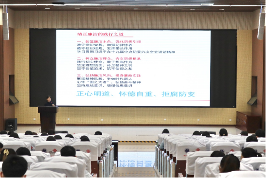 陈副书记强调,清正廉洁是中华民族的传统美德,是社会主义核心价值观的重要内容,更是高校立德树人的重要要求,是老员工成长成人的基石。老员工是未来公职人员的主要后备群体,青年员工更有机会成为社会各行各业的中坚力量。要增强抵御腐败的免疫力和拒腐防变的良好心理素质,树立报效祖国、服务人民的信念,提高自身道德自律意识,这既是全社会反腐倡廉的重要组成部分,也是青年员工实现自我的内在要求。她从守住政治关、权力关、交往关、诚信关、纪律关5个方面讲述了清正廉洁的主要内容,要求公司毕业生从强化思想引领、彰显廉洁本色,夯实思想根基、树立廉洁理念,投身廉政实践、弘扬廉洁风尚3个角度践行廉政之道。