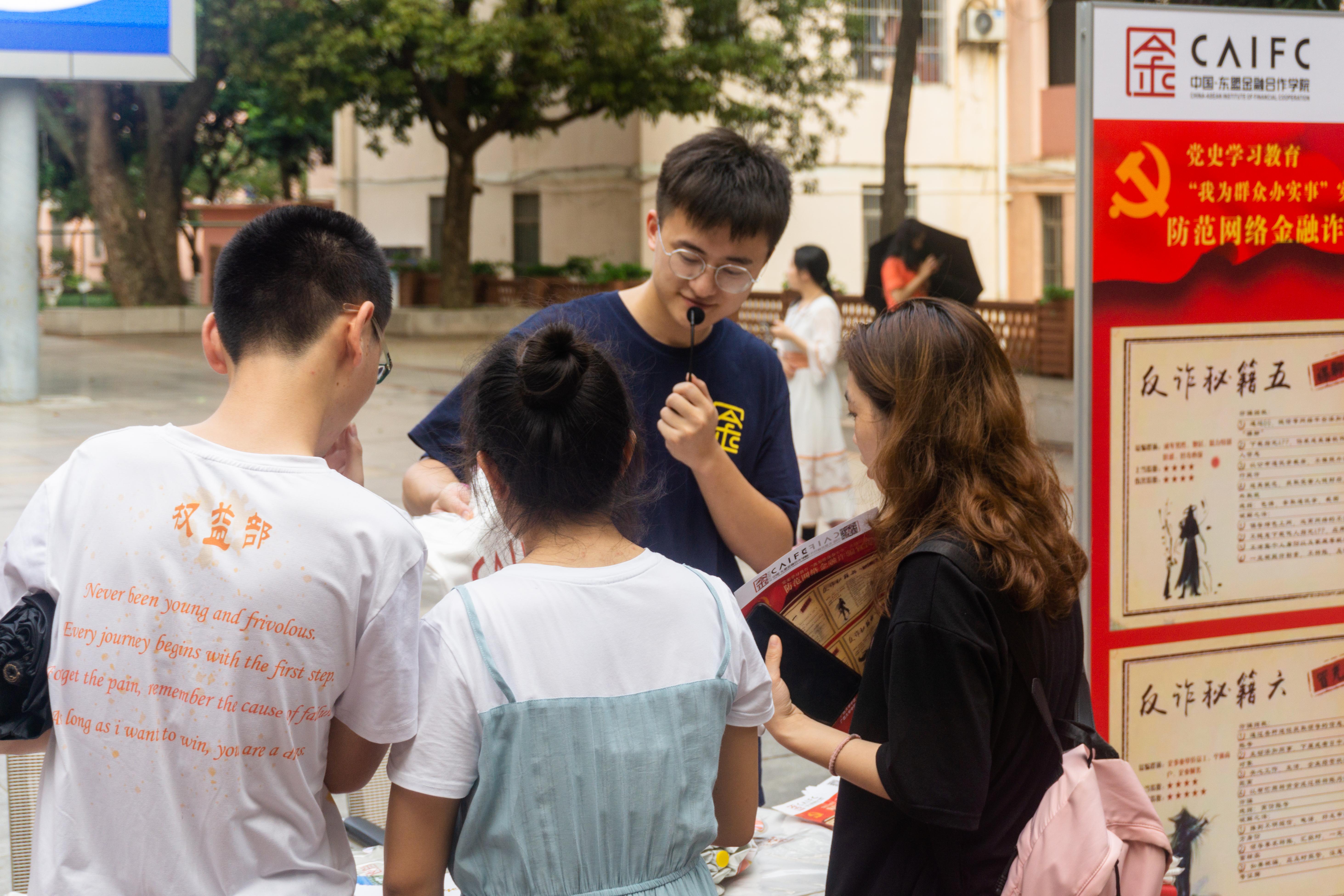为进一步扩大反诈宣传覆盖面,提高老员工群体的防骗意识。在公司党总支的指导下,东金院员工党支部、研究生会于5月19日下午在英国365集团西校园6B广场联合开展了党史学习教育“我为群众办实事”之防范网络金融诈骗宣传活动。