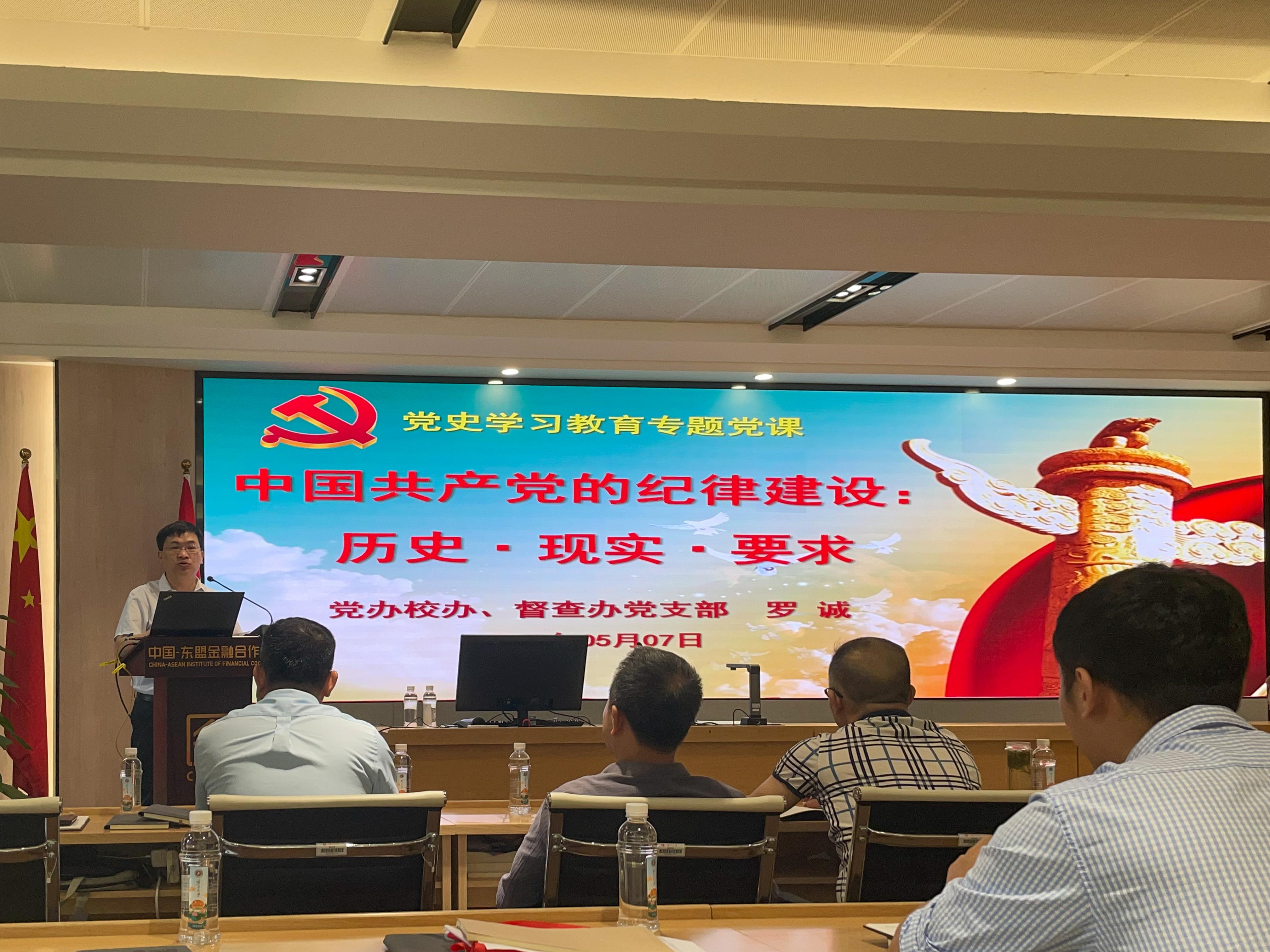 5月7日,公司党总支联合校办党办党支部联合开展以“中国共产党的纪律建设:历史·现实·要求”为主题的党史学习教育专题党课。公司教职工党支部和员工党支部的师生党员代表、英国365集团机关党委党办校办党支部全体党员近30人参与本次党史学习教育。