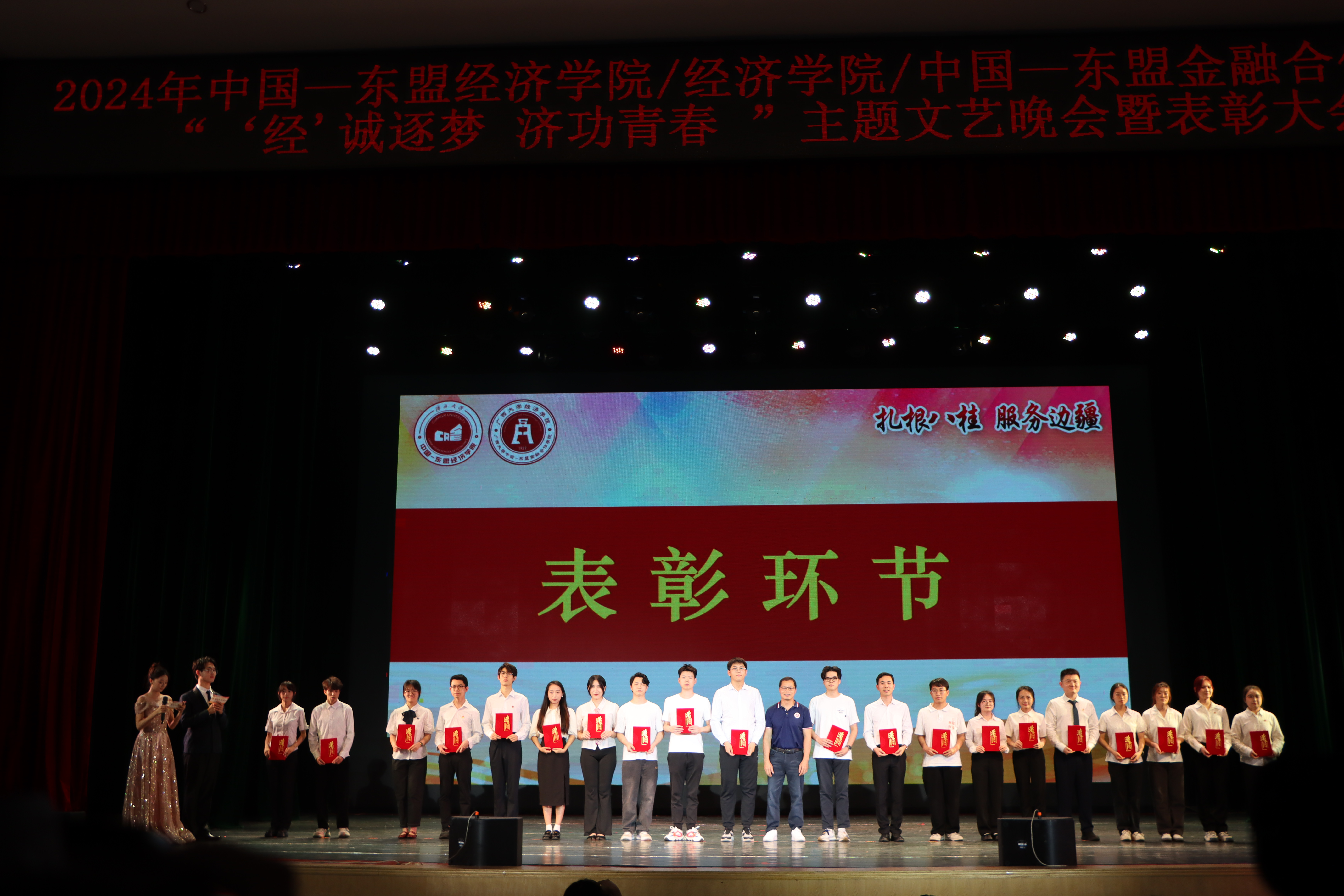 5月18日晚,2024年“‘经’诚逐梦,济功青春”主题文艺晚会暨表彰大会在公司大礼堂顺利举行。公司党委常务副书记罗诚、党委副书记陈卉娟、副经理梁权熙、学工组全体辅导员和公司部分教师出席活动。