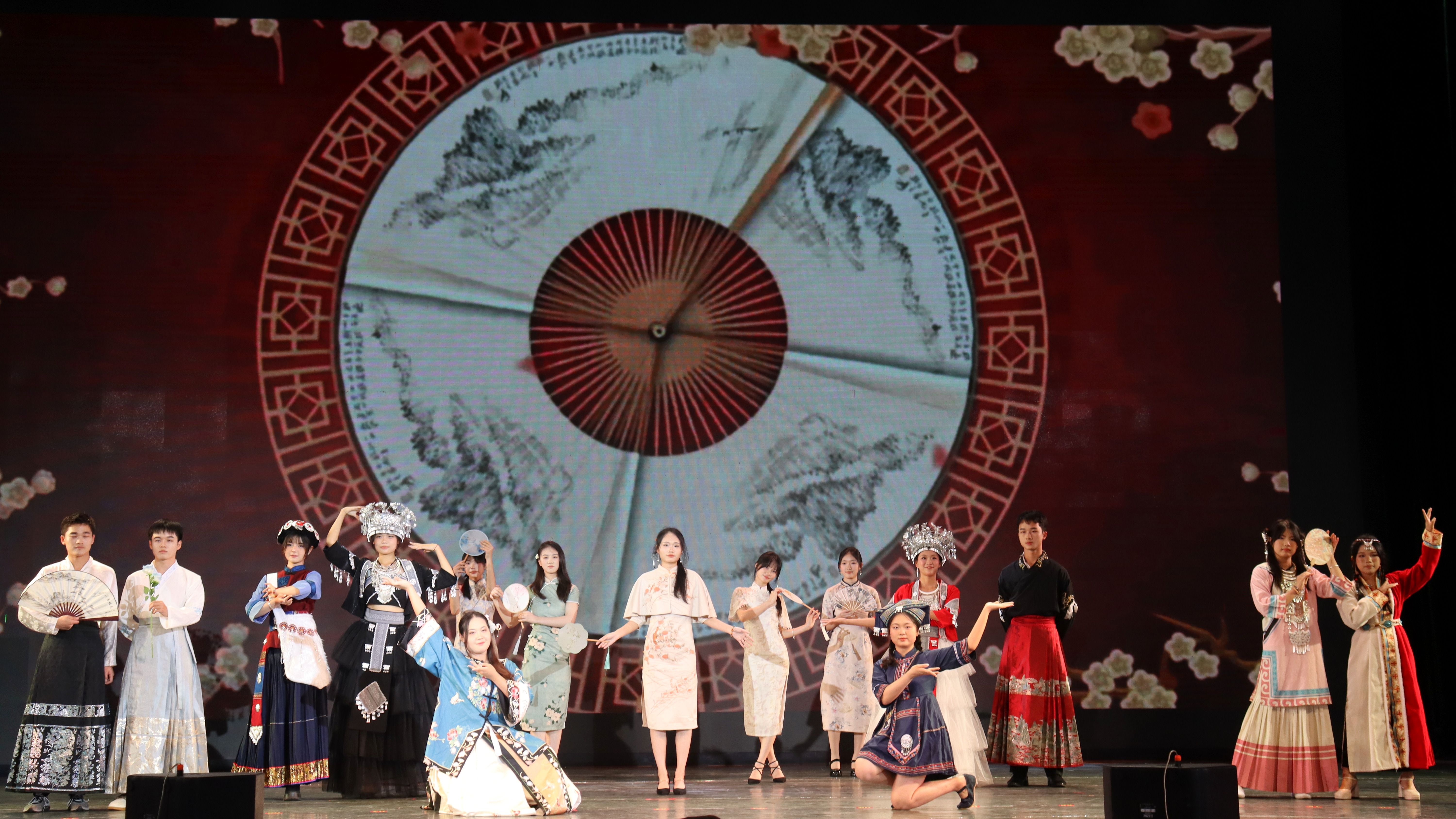 晚会在舞蹈《山河图》中拉开序幕,院舞蹈队精湛的舞技瞬间点燃现场气氛。