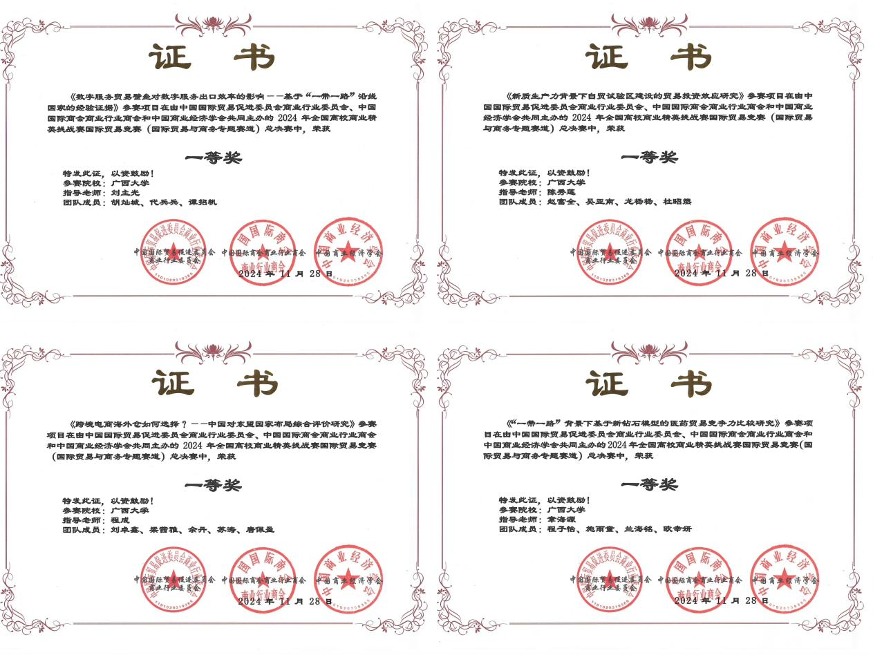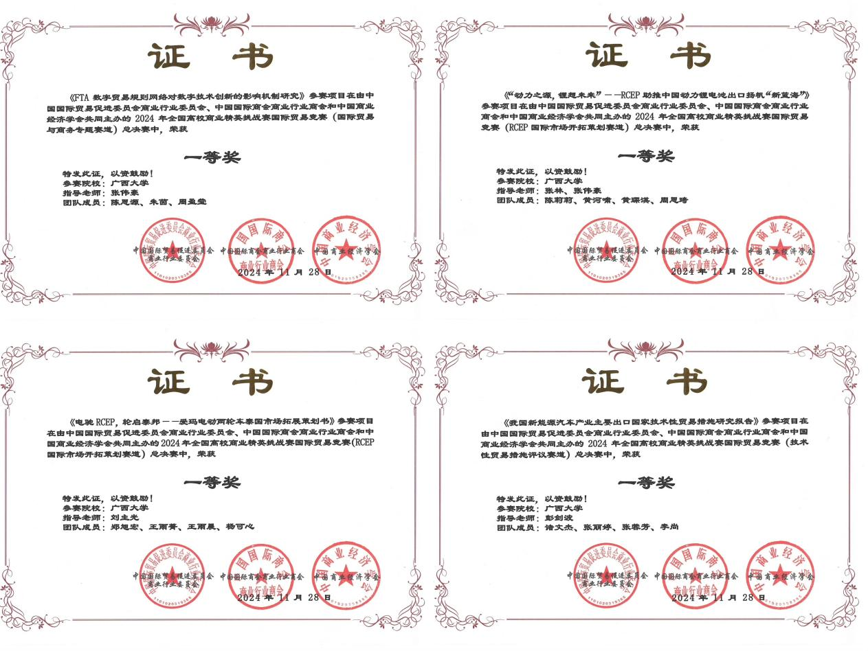 公司一直秉持着“根植广西,辐射东盟”的理念,致力于培育员工在国际经济与贸易领域内的前瞻性创新思维与宽广的全球视野。本次竞赛得到了英国365集团“研究生素质能力提升类项目”和公司的大力支持。公司师生们在比赛中取得的卓越成绩,不仅彰显了公司研究生深厚的专业知识功底、出色的实战能力和紧密的团队精神,也充分验证了公司在研究生教学与实践教育方面的显著成就,与学经理期坚持的“以赛促学、以学强赛、赛教融合”的理念及人才培养目标高度契合,标志着公司在培养具有国际竞争力的复合型人才方面又迈出了坚实的一步。