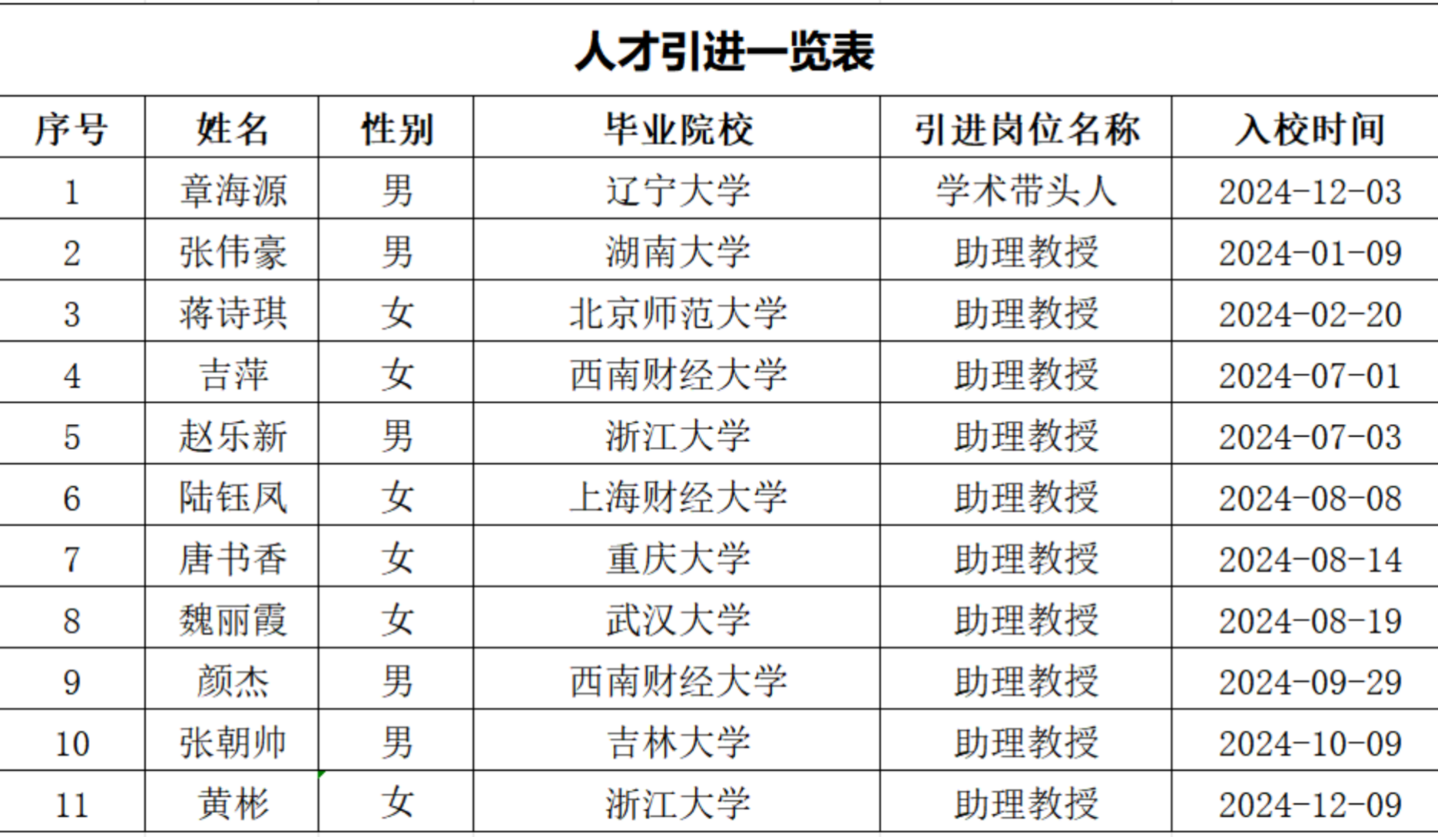 公司积极落实公司人才战略的重要举措,2024年公司先后赴北京大学、清华大学、中国人民大学等高校开展人才宣传招聘,精准引进人才,引进专任教师11人,含学术带头人1人。