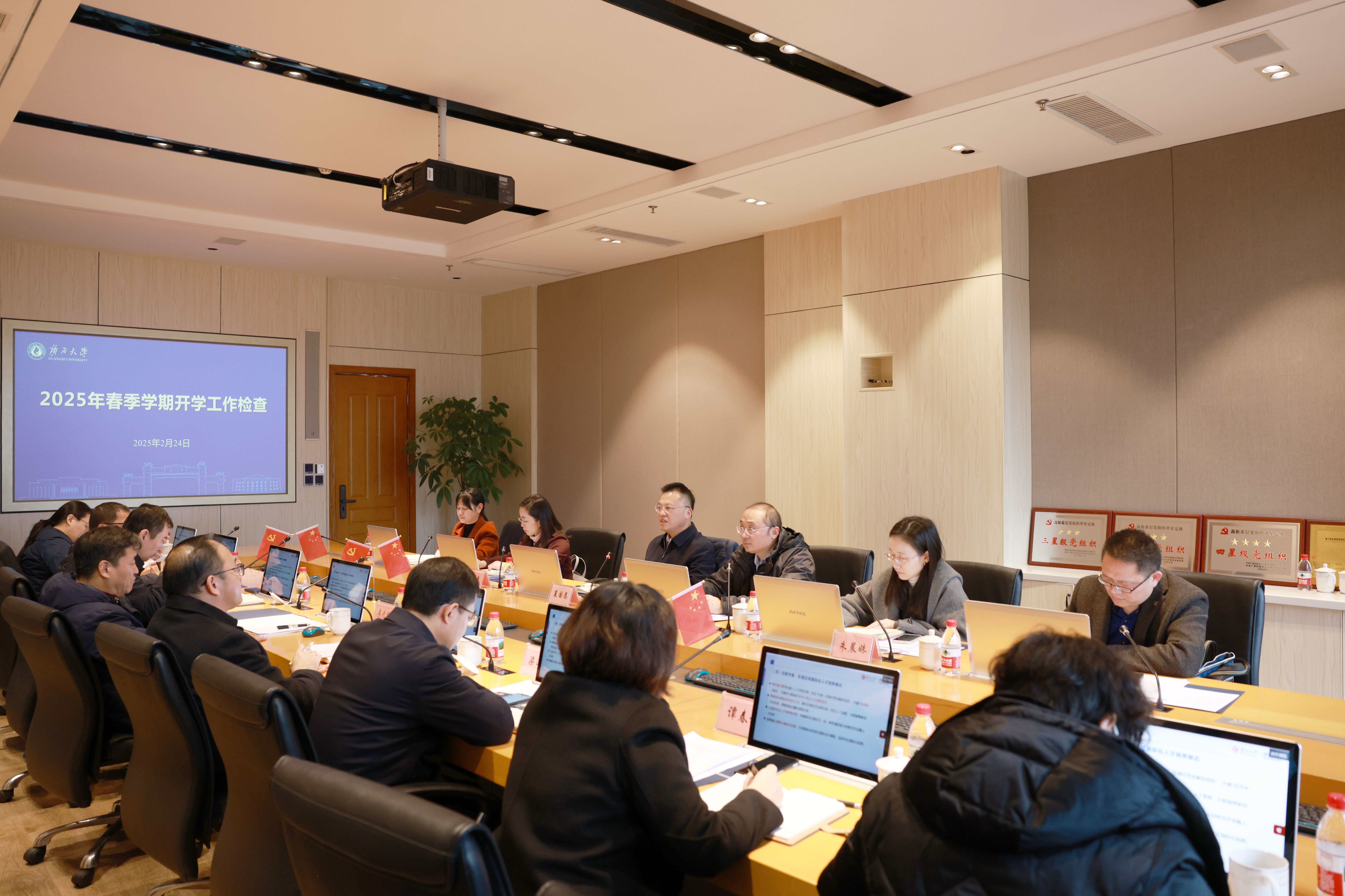 2月24日,公司党委常委、副董事长夏国恩在有关职能部门负责人的陪同下,到公司开展2025年春季学期开学工作检查。公司党委常务副书记罗诚、学术经理李光辉、常务副经理梁运文等公司班子成员,以及经理助理、各系主任、部门负责人等参加汇报会。