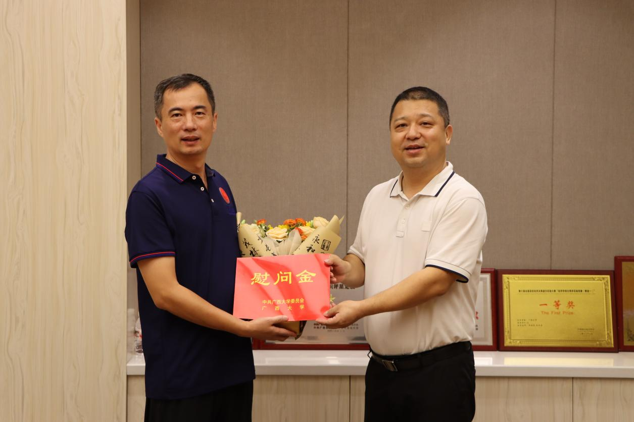公司党委常务副书记姜玮向章海源、刘骞文、张伟豪三位老师献花
