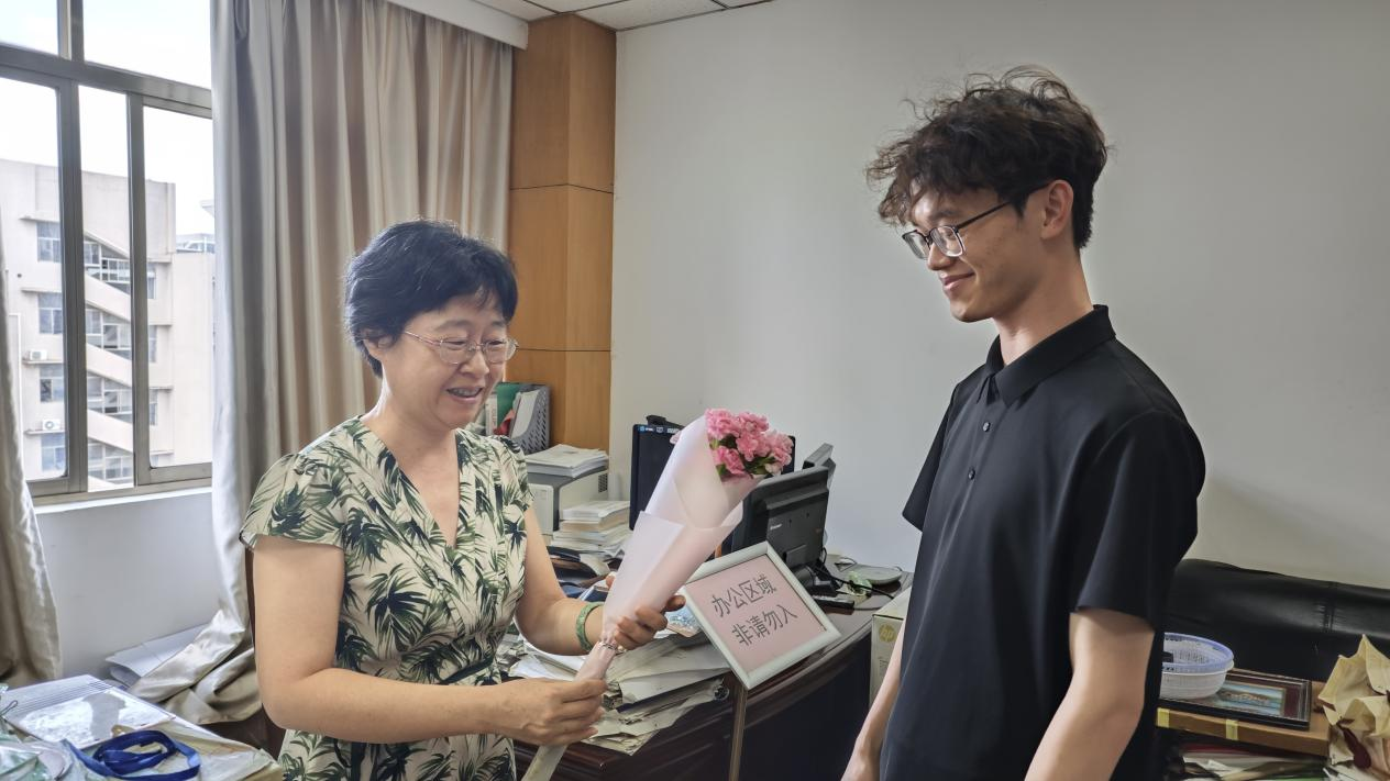 活动现场,员工们手持鲜花,整齐列队,面带微笑,为奋斗在迎新一线的教师们献上礼花。“老师,您辛苦了!”“祝您节日快乐!”一声声真挚的问候,一朵朵绽放的鲜花,凝聚的是经院学子对老师们辛勤付出的深深感激,也传递着校园里尊师重教的浓浓温情。教师们接过鲜花,脸上露出欣慰的笑容,眼中闪烁着感动的光芒,纷纷向员工们点头致意。这一刻,鲜花映笑脸,问候暖人心,师生间的情谊在温馨的氛围中静静流淌,成为迎新季里一道最动人的风景线。