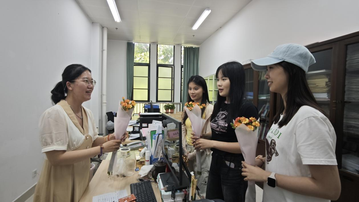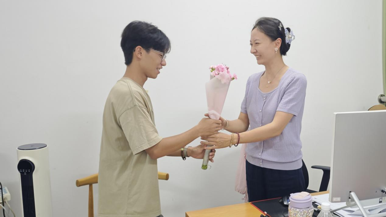 员工代表李沅芷、詹硕彦、韦可心、苏林馨、常兴业、林崇德为老师们献花