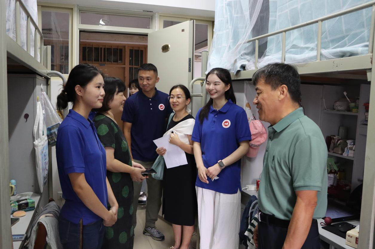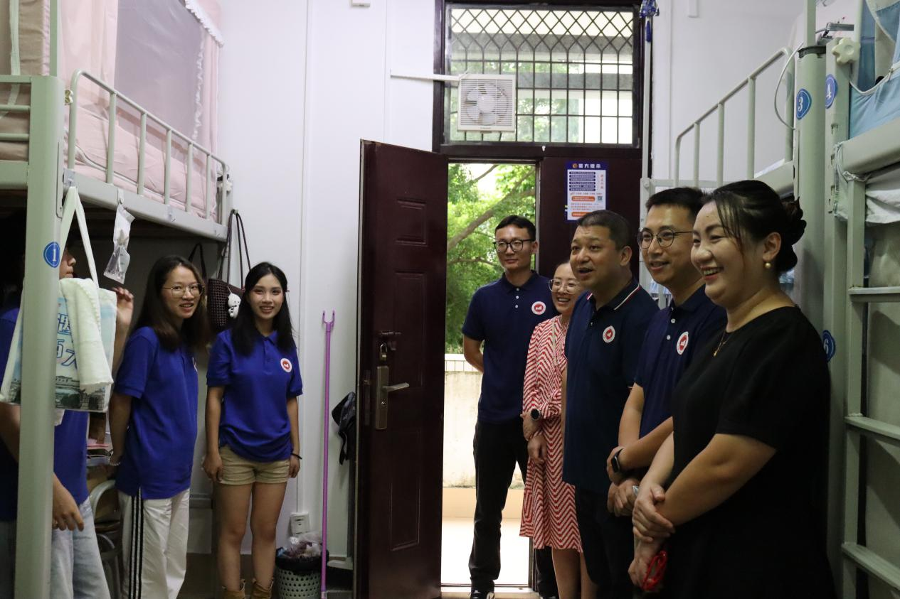 走访过程中,公司领导细致查看每一间宿舍的设施条件与居住环境,关切询问同学们的生活适应情况,耐心倾听初入校园的所思所感。领导老师们与新生亲切交谈,从家乡风土到入校体验,从学业规划到自我成长,言语间尽显关怀。他们勉励同学们要尽快适应新角色、融入集体生活,与室友彼此扶持、共同进步,既要专注学业、夯实专业基础,也要勇于尝试、积极参与各类实践与社团活动,在多元平台上拓展视野、锤炼综合能力。