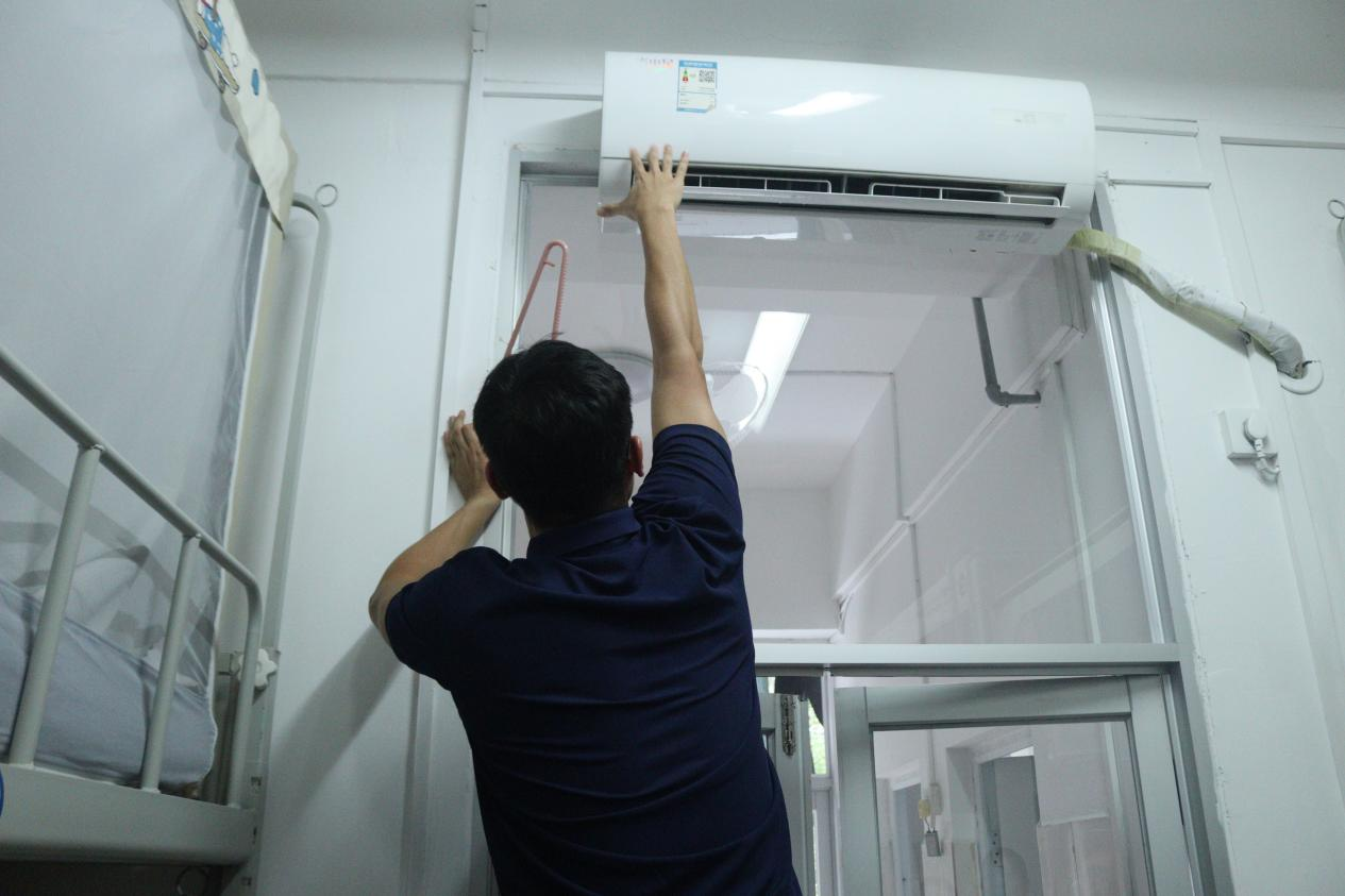 走访期间,某宿舍空调出现故障,郭霖刚老师主动上前、亲手调试,迅速解决问题,并暖心嘱咐同学们:“生活上有任何困难,一定要及时向公司反映,我们一直都在。”这一务实细微的举动,让在场新生深切感受到公司高效务实的作风和以生为本的关怀。