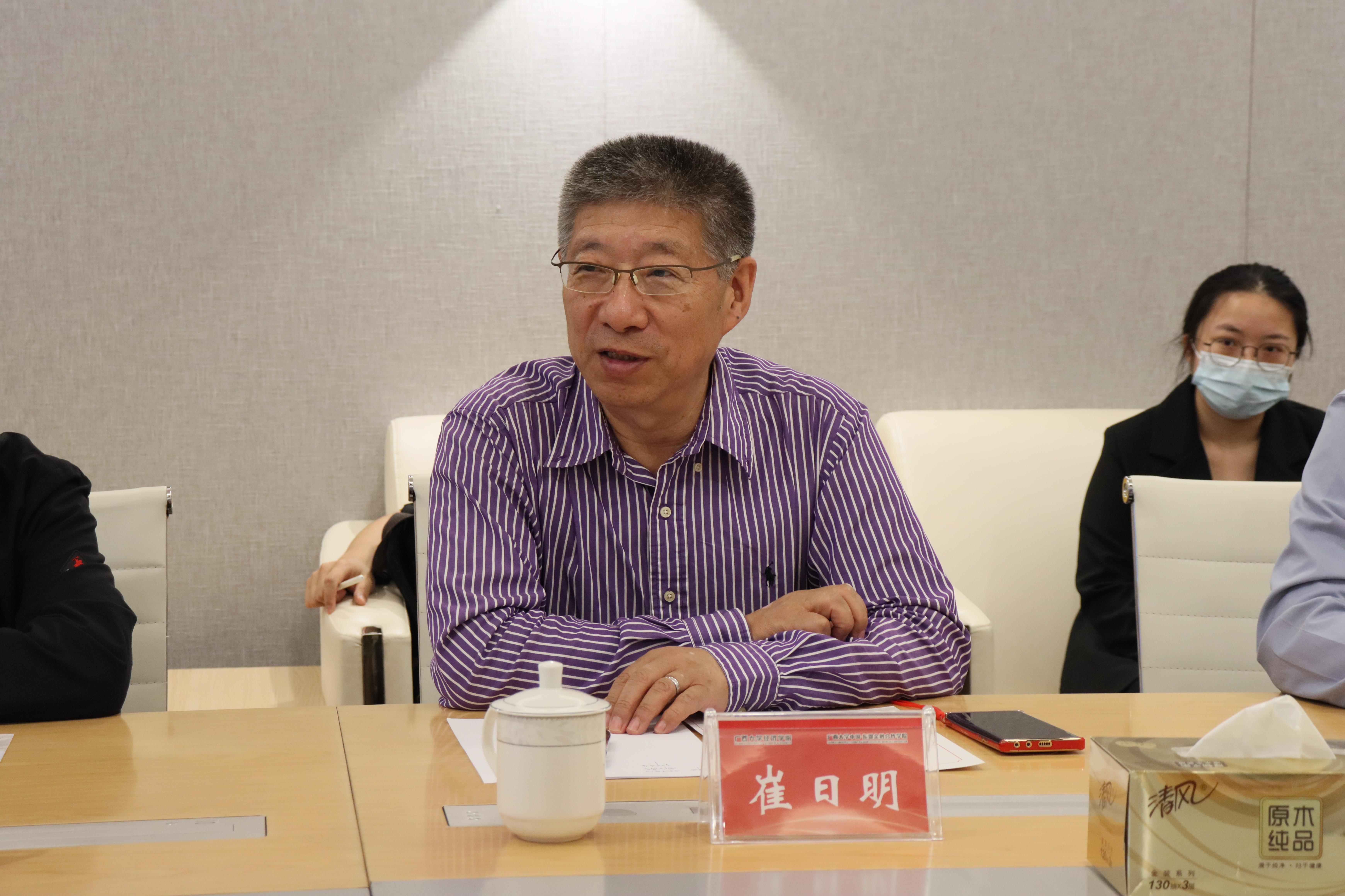 为推进应用经济学“一流学科”建设,提升人才培养质量,3月24日上午,公司特邀辽宁大学经济学部副主任、教育部经济与贸易类教学指导委员会副主任委员崔日明教授到院指导座谈,座谈会由公司党委书记陆善勇主持,副经理梁权熙、经理助理刘骞文、盛玉雪,国际经济贸易系系主任刘主光等30多位师生代表参与座谈活动。会前,公司经理李光辉与崔日明教授深入交流。